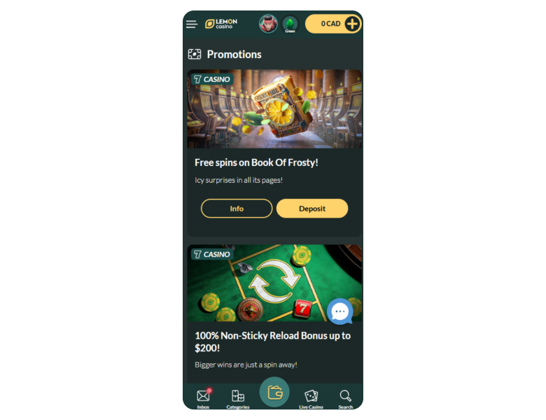 Yes. Lemon Casino offers recurring retention bonuses, including weekly cashback rewards and reload bonuses that vary by player activity level. Cashback is typically calculated as a percentage of net losses over a set period and is issued directly to a player’s account balance, often without wagering requirements.
