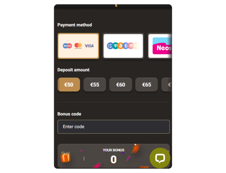 You can use debit/credit cards, Neosurf and crypto coins for deposits.