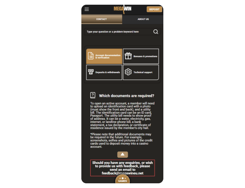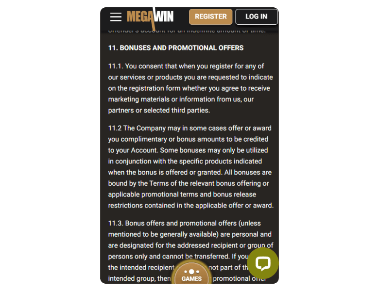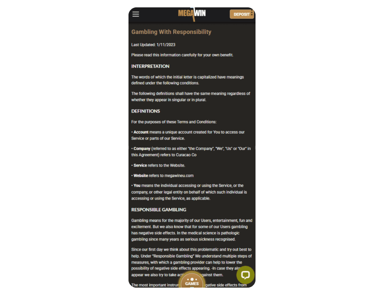 Use these links to access the necessary information about MegawinEU Casino: