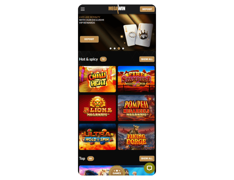 MegawinEU relies on a mobile site. As a result, you won’t need to download an app to play in it. You can use a standard and updated browser, such as Chrome, Opera, or Firefox. Once you register, you will be able to use your account and play all the games. The site is built with HTML5 technology, so the elements stretch automatically to fill your mobile screen.