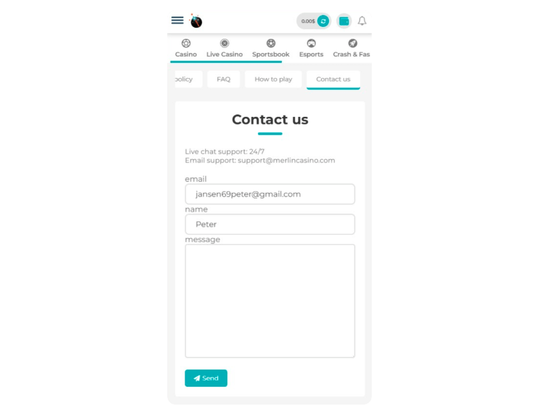 Merlin gives you all standard support channels plus a genuinely helpful FAQ. First, I asked about a no deposit bonus via chat, and an agent replied in about a minute with a clear answer. Second, I asked about verification via email, and I got a proper response roughly a day later - fine for email, just slower than chat.