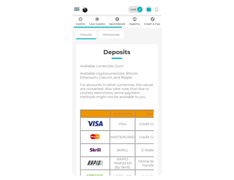 Merlin Casino offers both fiat and crypto payments. You can use cards, e-wallets, plus options like Google Pay. If you’re into crypto like I am, you can go for Bitcoin, Ethereum, Tether, Litecoin, Ripple, and more.