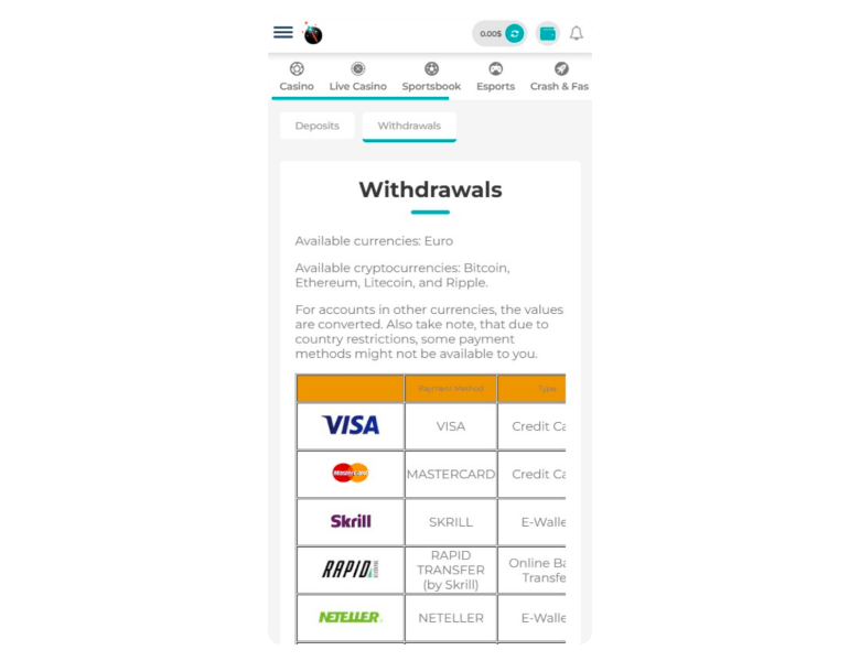 I personally went with Ethereum because it’s the most convenient for me, and the experience was smooth. My withdrawal was processed really fast - it took around 10 minutes. Still, players can pick whatever method suits them best.