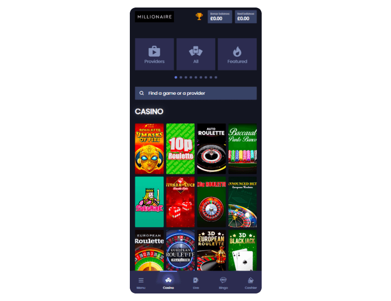 I’ve seen larger game lobbies, like those at Spin Samurai or CrazePlay, with over 6,000 options, so it’s almost twice Millionaire’s size. However, it doesn’t mean the quality is poor. On the contrary. I could clearly see the focus is on slots, so if you’re into live/table games more, it may not be the perfect spot. But slot fans are fully and well-covered: Megaways, Bonus Buy, Cascading Reels, Free Spins, Respins, Progressive Jackpots, you name the feature. It’s all here. Plus, demo is available to try out machines for free first — feels pretty handy.