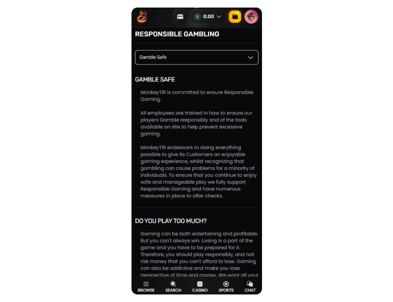 I was pleased at how Monkey Tilt performed on a Brave browser via a Redmi device. I was able to pay without any problems. 156 ms is one of the fastest scores I’ve seen, easily on par with PlayOjo Casino. What’s more, the big icons and plenty of navigational filters created a pleasant experience on mobile for me. Everything was fine, even without an app.