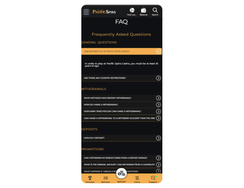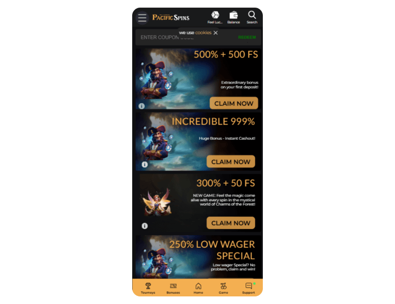 Review Disclosure: My review of Pacific Spins Casino is based on a practical experience. I took a deep dive into its game selection, bonuses, and overall platform performance. I've tested everything, so let's have a look.
