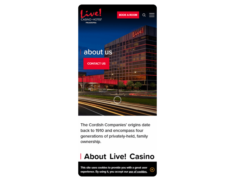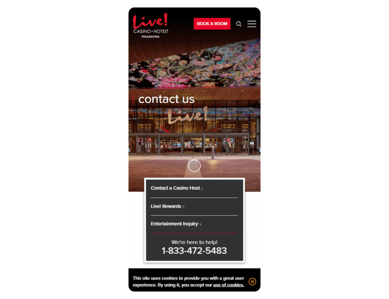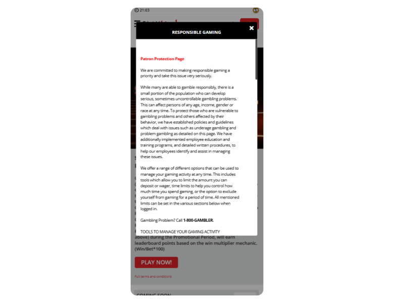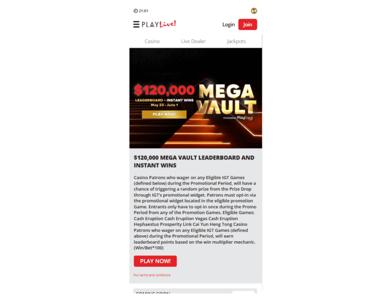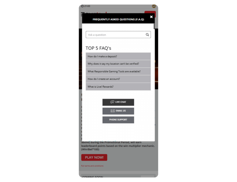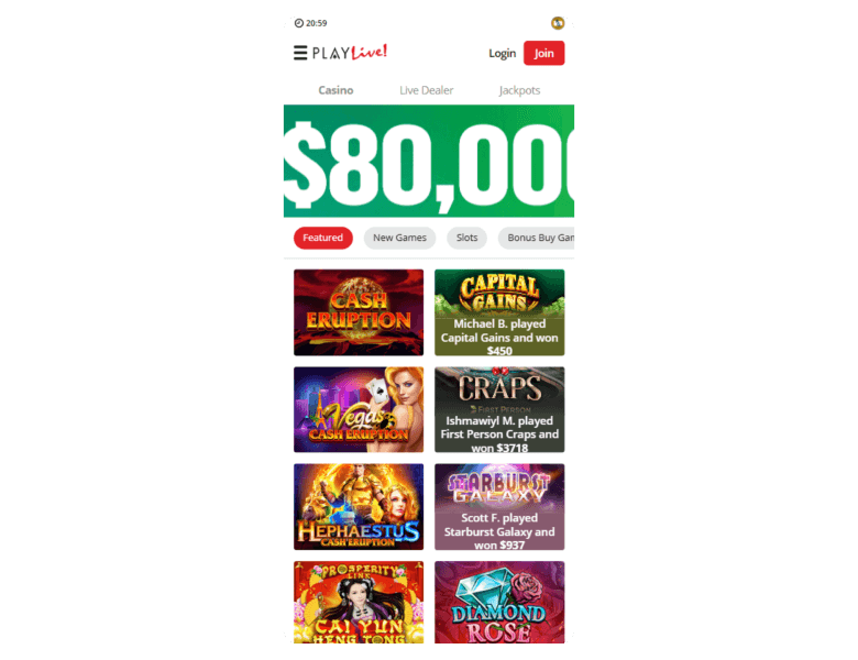 Screenshot of the main sections of the casino website: