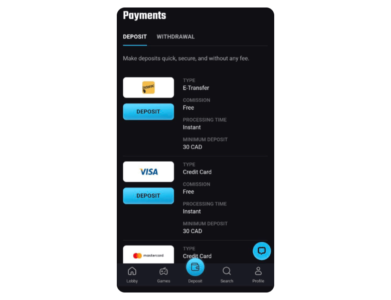 Overall, PlayMojo Casino's diverse payment option positions it favorably among competitors. However, the processing time for fiat withdrawals could be improved to match e-wallets.
