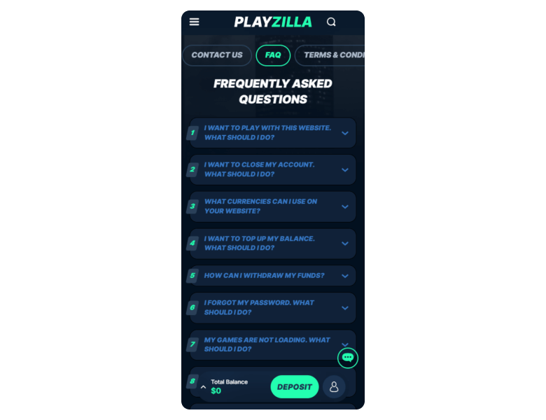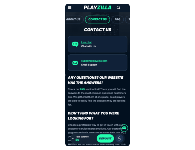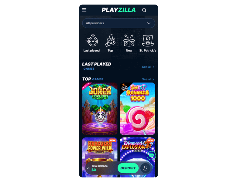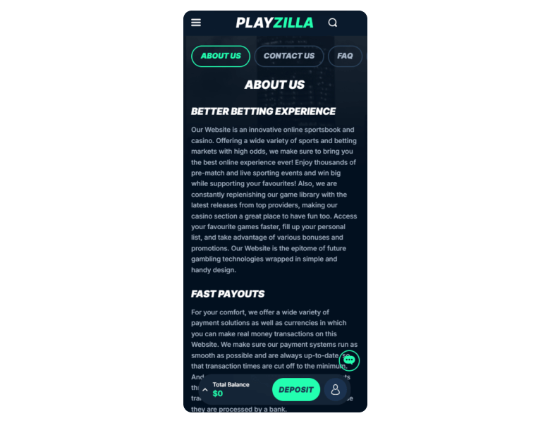 Screenshot of the main sections of the casino website: