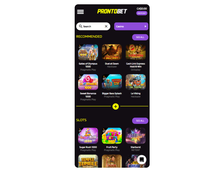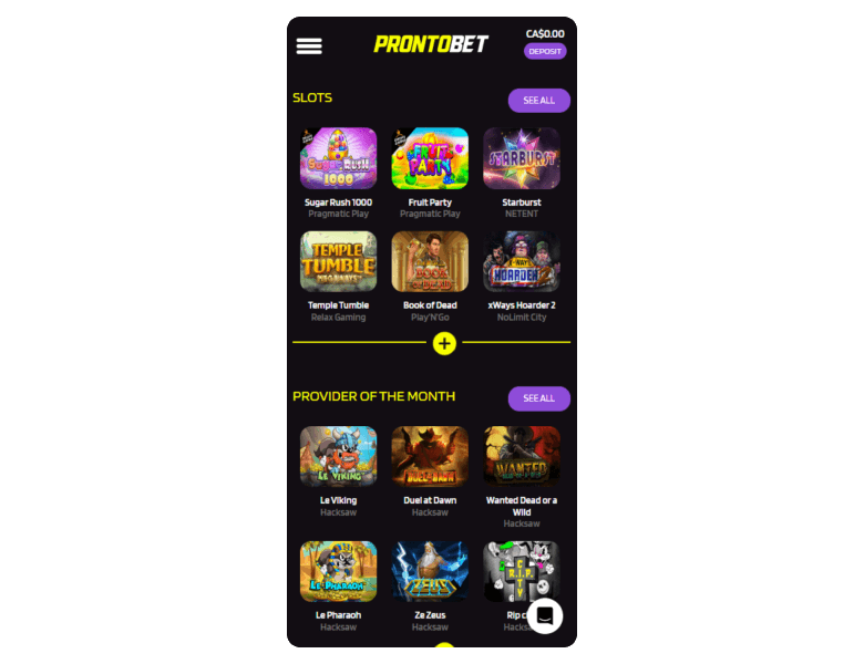 ProntoBet offers an awesome library of 5,600+ games from top studios like Pragmatic, Evolution, Octoplay, and others. This crypto-friendly site supports 10 digital coins, among traditional methods, and is fully adapted for playing via mobile phones through the browser.