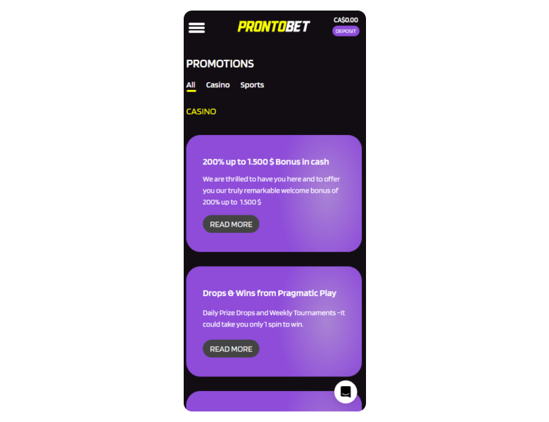 I’ve joined ProntoBet gambling with a 200% welcome bonus of up to C$1,000. After depositing C$30, I’ve tripled my initial amount; the 30x wagering requirement is more than fair, although I only had 3 days to complete it.
