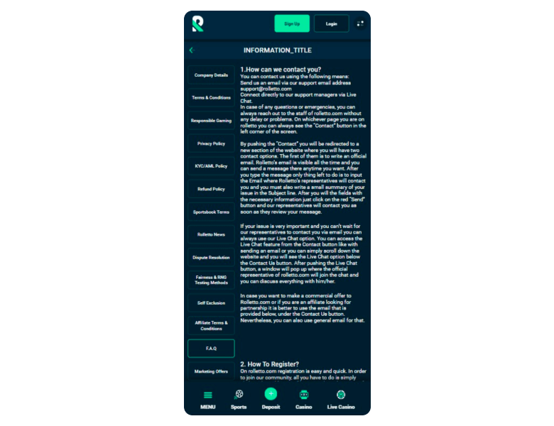 I know how hard it may be to stop in time, which is why I always look for a reality check tool at casinos, but I couldn’t find one here. Yeah, a bummer, I know. But considering the rest is covered, from financial limits to self-exclusion, I wouldn’t be too hard on Rolletto and forgive them this minor drawback.