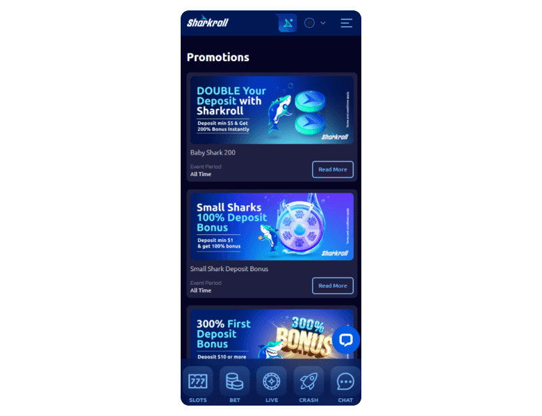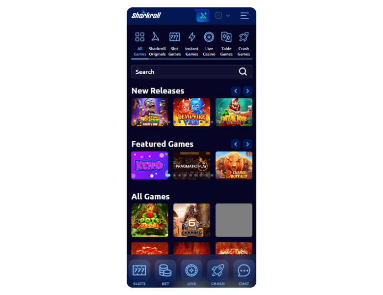Despite not having a downloadable application, playing Sharkroll Casino games via a mobile browser is smooth. The website is compatible with modern Android and iOS devices and features a fully responsive interface.