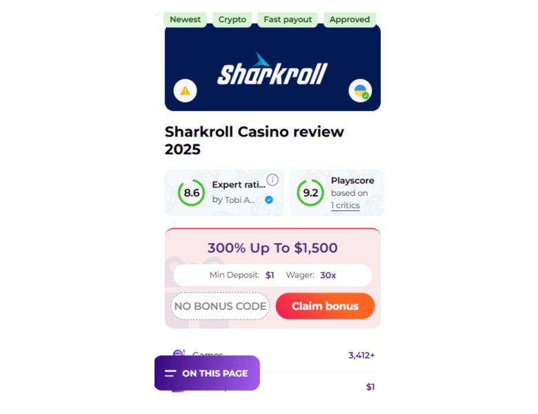 Use this link to access the necessary information about Sharkroll Casino: