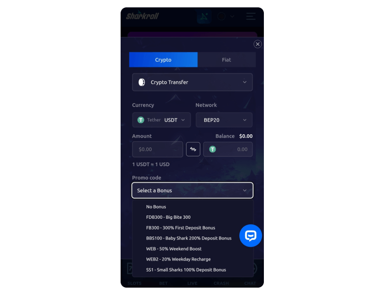As a crypto-based platform, payments on Sharkroll Casino are mainly via cryptocurrencies like USDT. In addition, traditional players have over three fiat banking options to choose from.