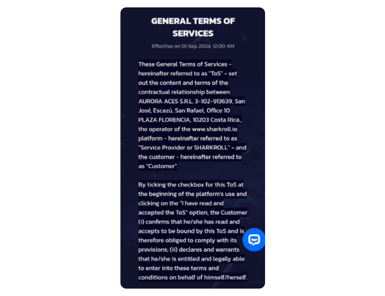 One of the most important aspects of my Sharkroll Casino review was investigating the operator's license. Fortunately, I found that the casino is owned by a well-known Costa Rica-based company and also uses a license from the same country.