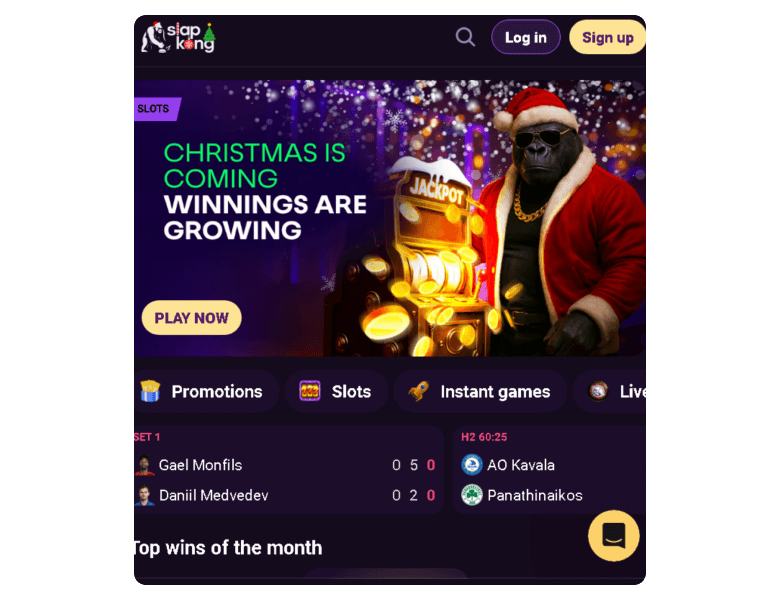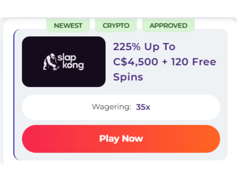 Slap Kong is a brand-new Bellanian Limitada casino that has been live since early 2025. The platform delivers slots, table games, and live-dealer titles specifically to Canadian players. Slap Kong also provides betting opportunities on 22 sports, including events from chess and politics.