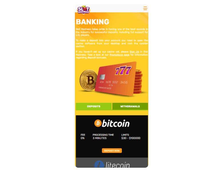 Slot Madness Casino doesn’t have clear information on its licensing and regulation, but it does mention collaboration with CDS Corporation, an independent player disputes and mediation service.