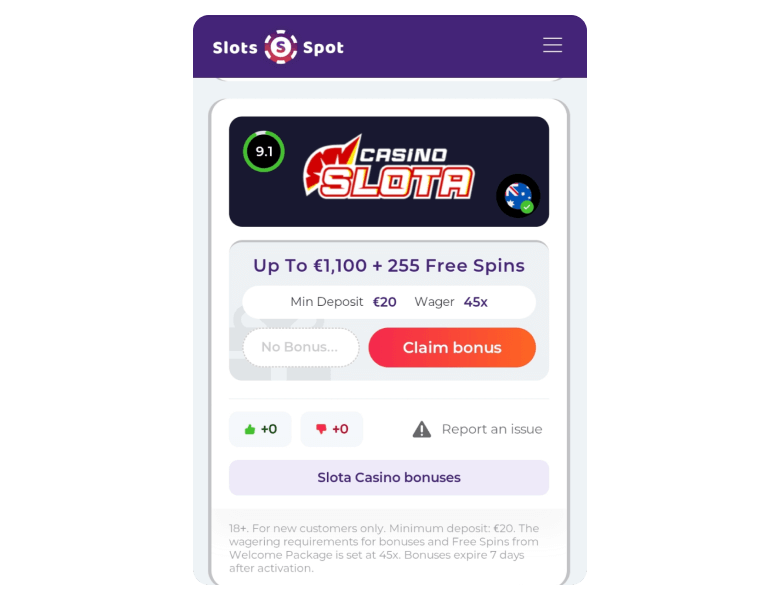 Review Disclaimer: This is my genuine opinion of Slota Casino after personally testing its games, bonuses and features. My review is based on firsthand experience and independent evaluation.