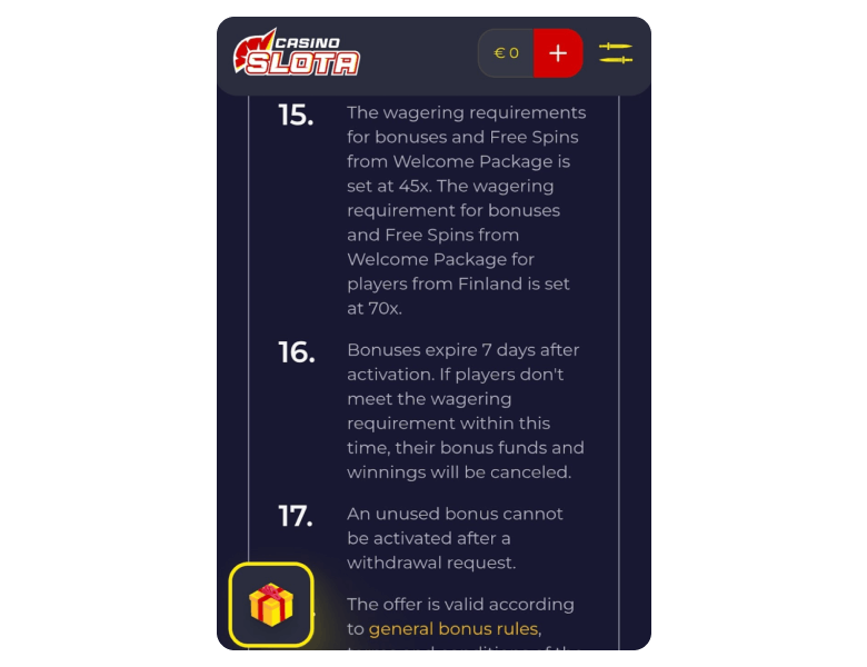 First, it must be stated that Slota Casino doesn’t have a mobile app. However, the website is mobile friendly as it was designed using HTML5 technology. Slota can therefore be accessed via Android or iOS mobile browser.