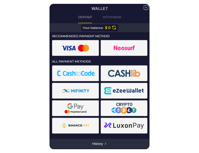 Slota Casino supports various deposit options, including e-wallets, credit cards, bank transfers, and cryptocurrencies. Here are more details on deposits: