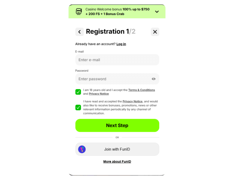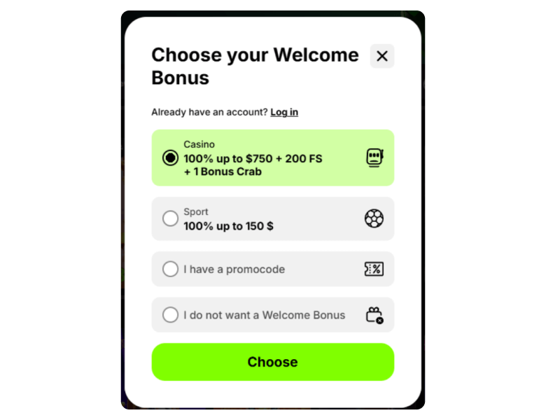 | Welcome Bonus | 100% up to C$750 + 200 Free Spins + Bonus Crab | C$30 | 35x (deposit + bonus), 40x FS | Not Required |