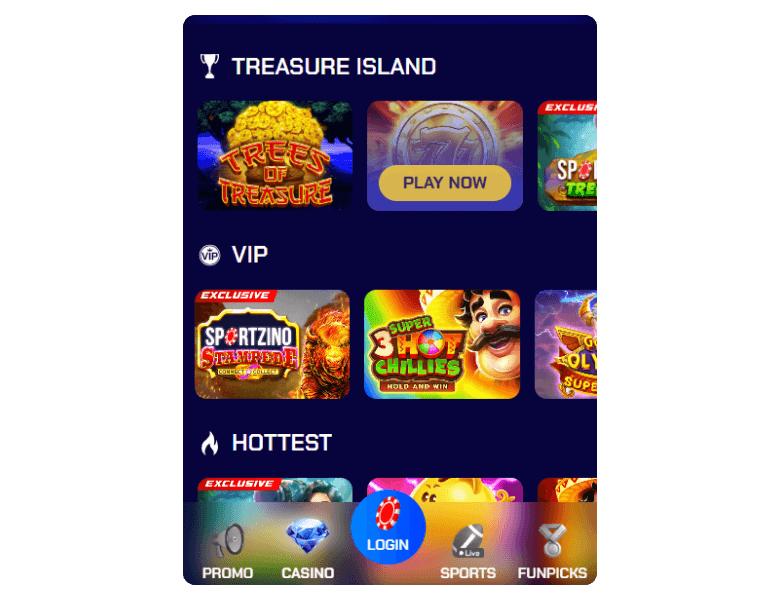 Unfortunately, Sportzino does not currently offer any live dealer or live social casino games. This is a notable absence in their otherwise comprehensive gaming portfolio.