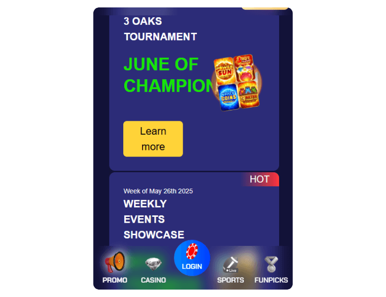 The strengths, unmatched welcome bonus value, dual casino/sportsbook functionality, exclusive games, mobile apps. On the down side, no live dealer games, limited payment options, email-only support. It is ideal for slot enthusiasts, sports fans wanting free predictions, mobile players, and anyone seeking generous daily rewards without purchase requirements.