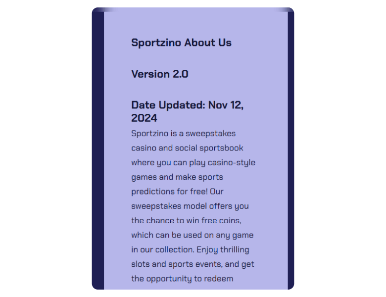 Launched in December 2023 by SSPS LLC, Sportzino is still relatively new to the sweepstakes casino scene but has quickly established itself as a major player. The platform operates on a dual-coin system, offering both casino games and sports predictions under one account.