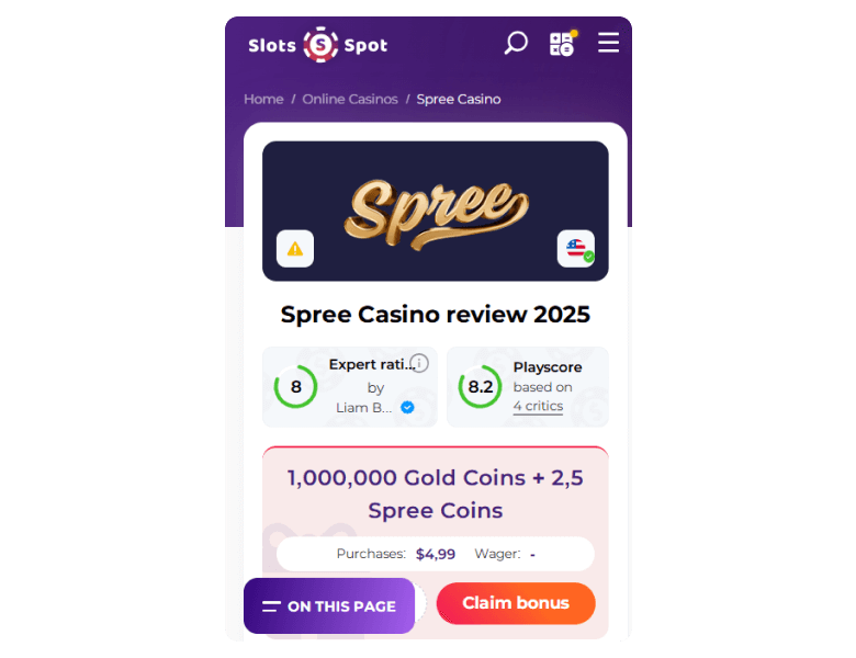 Review disclosure: This review is based on my personal experience after testing Spree Sweepstakes Casino. I’ve looked at everything from the available game selection to the usability of the site as of 2025.