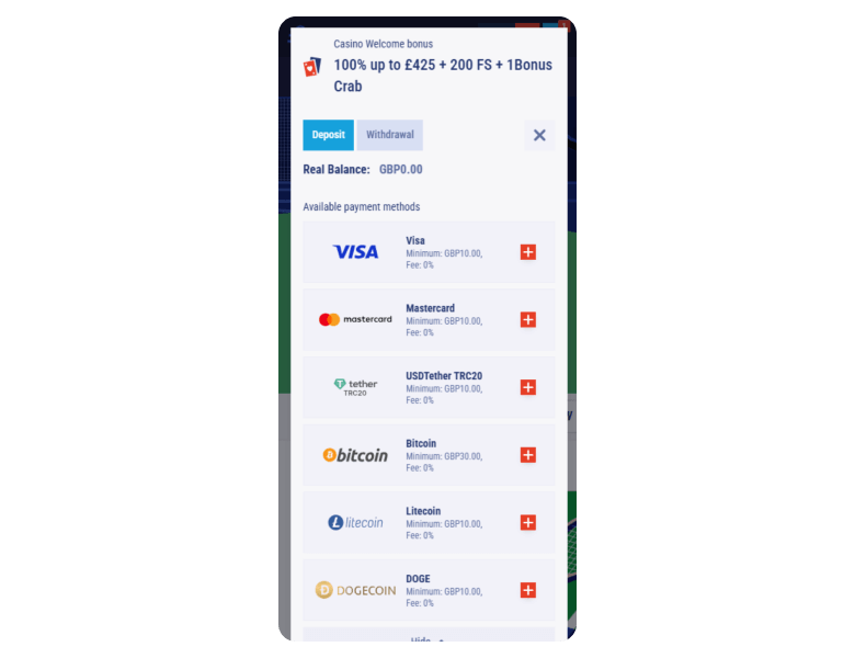 When I picked TikiTaka, I knew I didn't blunder — it’s backed by Lumina Holdings Limitada and operates under a Costa Rica license. As a newcomer, I got a 100% welcome bonus: I deposited £50, and another £50 landed instantly in my balance, along with the bonus. For depositing, I used a Visa, and the money showed up immediately. The casino also offers deposits in 5 other ways (MasterCard, USDTether TRC20, Bitcoin, Litecoin, and Dogecoin).