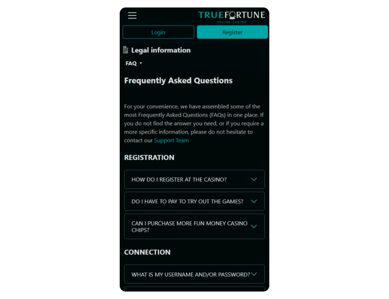 To begin with, True Fortune Online Casino has a detailed FAQ area with questions across 8 categories, from registration to payments, and those are pretty much handy. But when it’s not enough anymore, there are 3 different ways to reach the support team. Live chat replies usually took me a couple of minutes to get a reply, email responses usually came within 4 hours, and phone support is actually what surprised me in a good way, since not many online casinos still offer it. However, at peak times, you sometimes have to call a couple of times before you finally get connected.