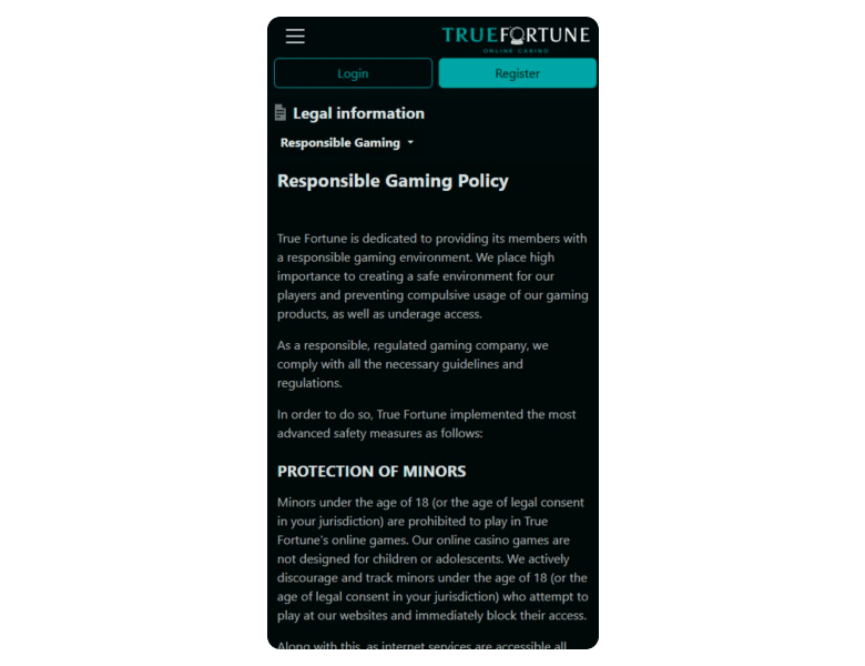 True Fortune operates under a Curacao licence. What it means for players is that they get basic regulatory protection. On the security side, I found out they use 128-bit SSL encryption, which is basically the same level banks use. Still, I’d feel better if independent RNG audit certificates were also obtained and then shown on the site.