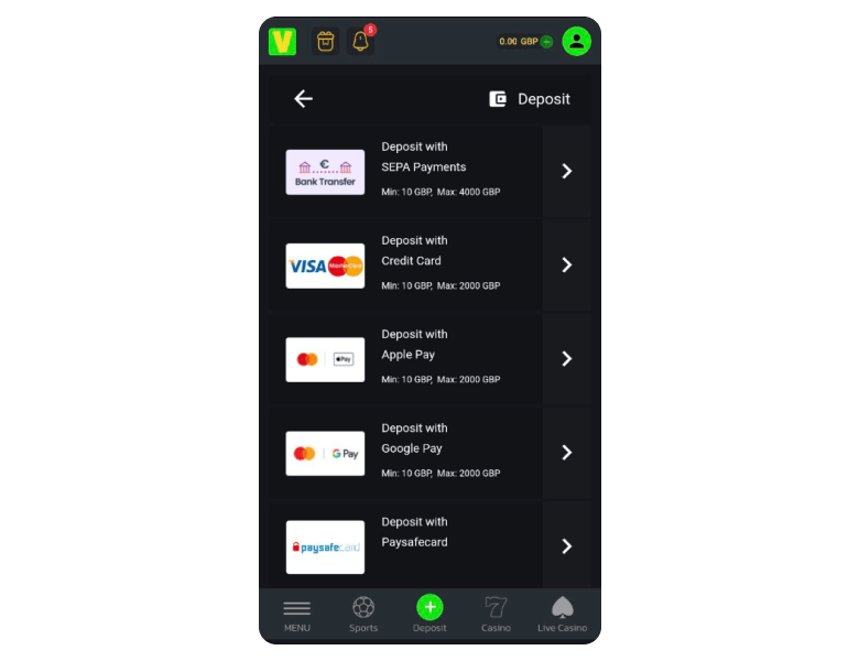 Velobet strongly focuses on crypto deposits, but you can also deposit with locally popular e-wallets, bank transfers, and credit and debit cards.