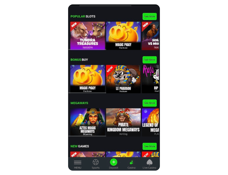 This casino’s large game library is the result of a wide network of established partnerships with developers. The list is long and rivals that of its friendly competitors, like Rolletto and MyStake, for example. I liked the fact that it partners with NetEnt, Evolution, and Pragmatic Play. These companies are known for the fairness of their games and the high-end graphics and overall quality.