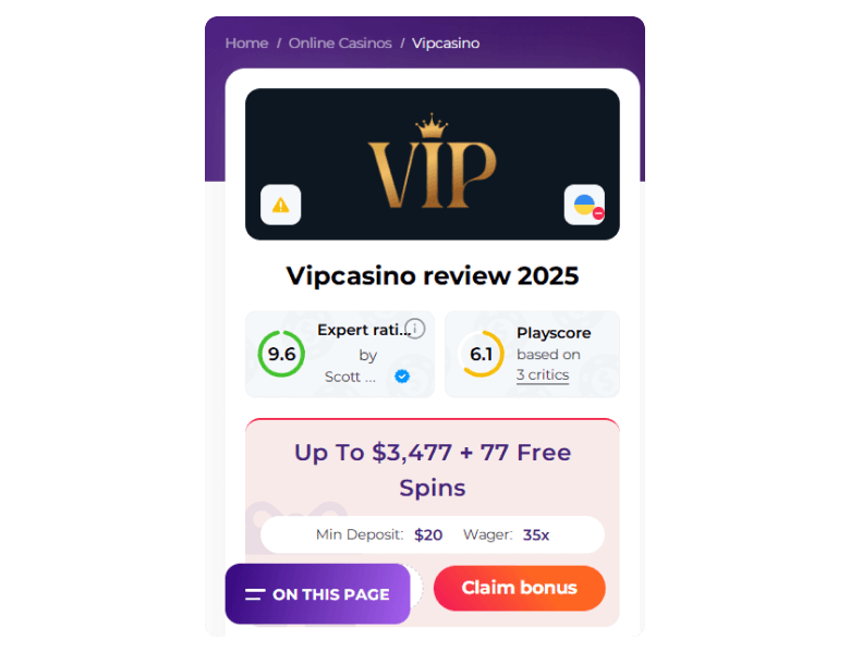 To sum up, I can say that VIPcasino provides a great game library of over 12 560 titles, a diverse bonus program, crypto-friendly payment options, and 24/7 live chat support. Going to downsides, the high wagering requirements might be a drawback. Additionally, as a new casino launched in 2025, it has yet to establish a reputation on platforms like Trustpilot and Reddit.