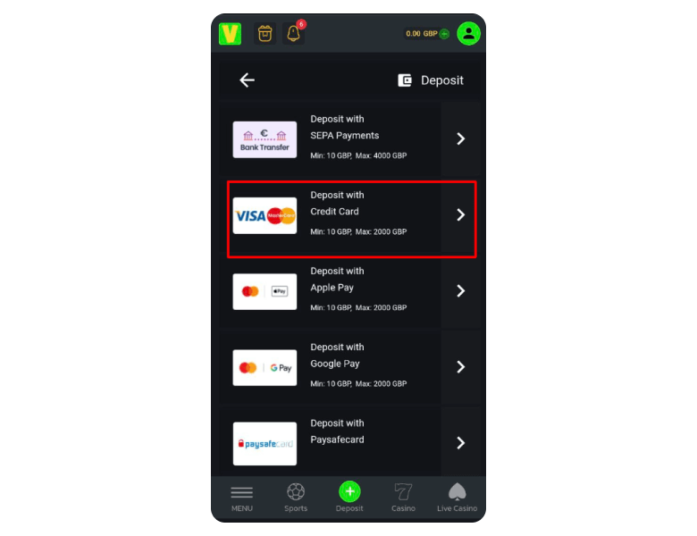 Make your first Visa deposit, making sure you meet the minimum requirement to activate your welcome bonus.