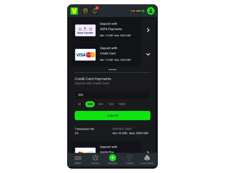 Once your bonus is activated, you’re all set to go. Navigate to the games lobby and familiarize yourself with your options. The vast majority of our recommended Visa Casinos offer several game categories like slots, table games, crash games, live dealer tables, and more. Have a look at what’s on offer, while taking note of the minimum stakes allowed to ensure you don’t go over your budget.