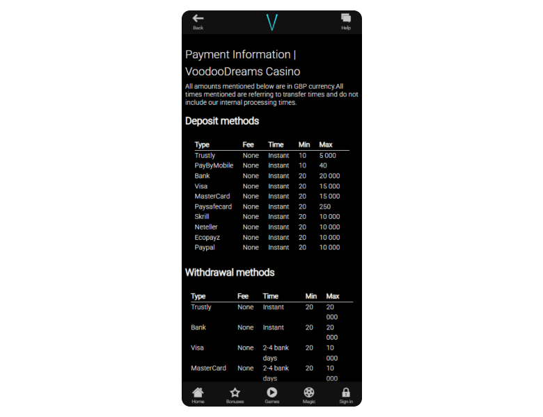 Withdrawal methods Withdrawal limits Withdrawal time