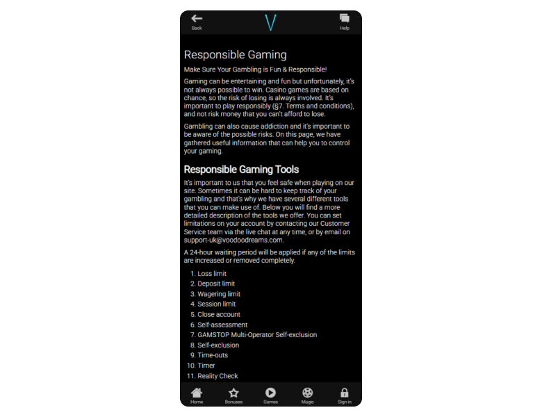 Responsible Gaming Section