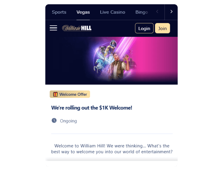 William Hill Vegas provides slots and live dealer games to European and North American players. It is a well-established brand, active since 2008. It is owned by WHG Limited, which also operates Eurogrand, Sky Kings, and Prestige Casino.
