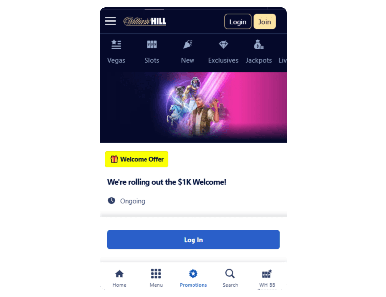 William Hill Vegas is a good choice for players melancholic about the Vegas experience. Large jackpots, plenty of slots, and live tables define your stay there. You go there with what you have in your pockets, as the bonuses are not going to help much, just like Vegas.