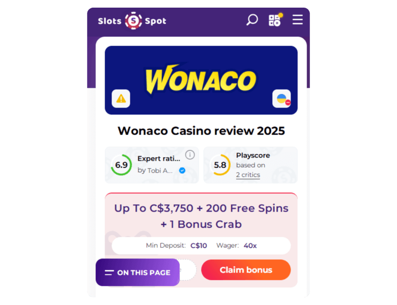 I didn’t know what to expect when I landed at Wonaco Casino, but the site looks clean, games load quickly, and the layout makes it easy to find what you’re after, whether that’s slots, live games, or something in between. I deposited C$100 using Interac, and within seconds, the welcome bonus kicked in with C$100 extra, 50 free spins, and a Bonus Crab round I didn’t see coming.