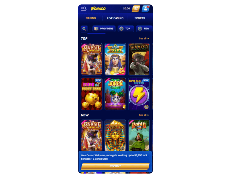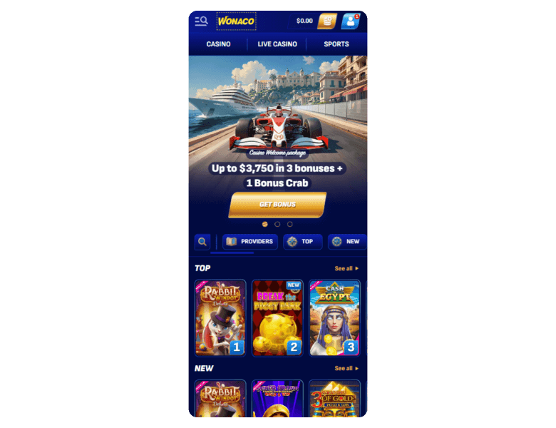 Wonaco’s software lineup punches above its weight. It balances legendary developers with fast-rising names, so that you have a mix of proven and fresh content. Compared to newer sites like Sportaza, it felt smoother and more polished.
