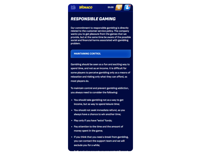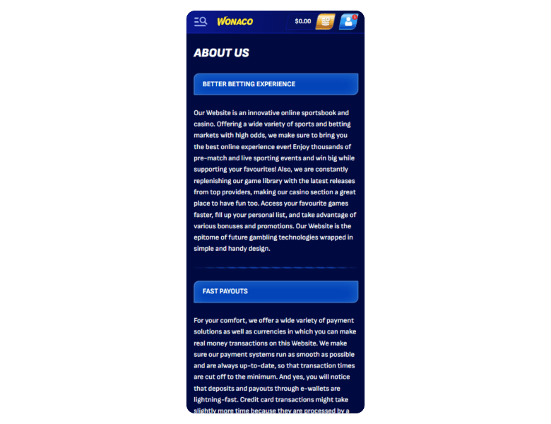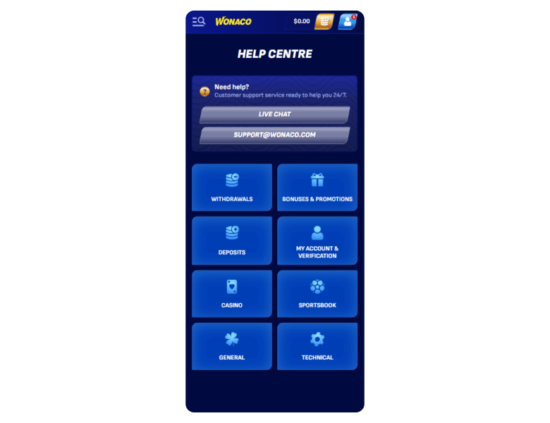Right now, Wonaco doesn’t offer a downloadable casino app, but the mobile browser version holds up well. I tested it on both Android and iOS, and pages loaded fast, games ran smoothly, and the layout stayed responsive throughout. The top bar and filters adapt cleanly to smaller screens, so I didn’t feel the need for an app.