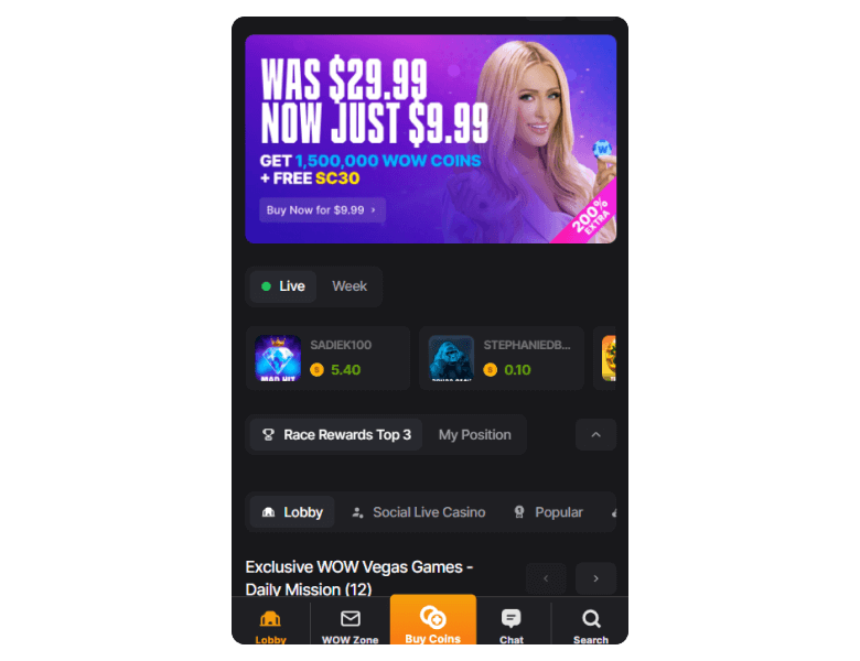 WOW Vegas immediately feels player-friendly. I was drawn in by the library of slot games and the generous free coin offers for new players. After testing it out, I think this platform offers a fun, risk-free casino-style experience that stands out among sweepstakes casinos.