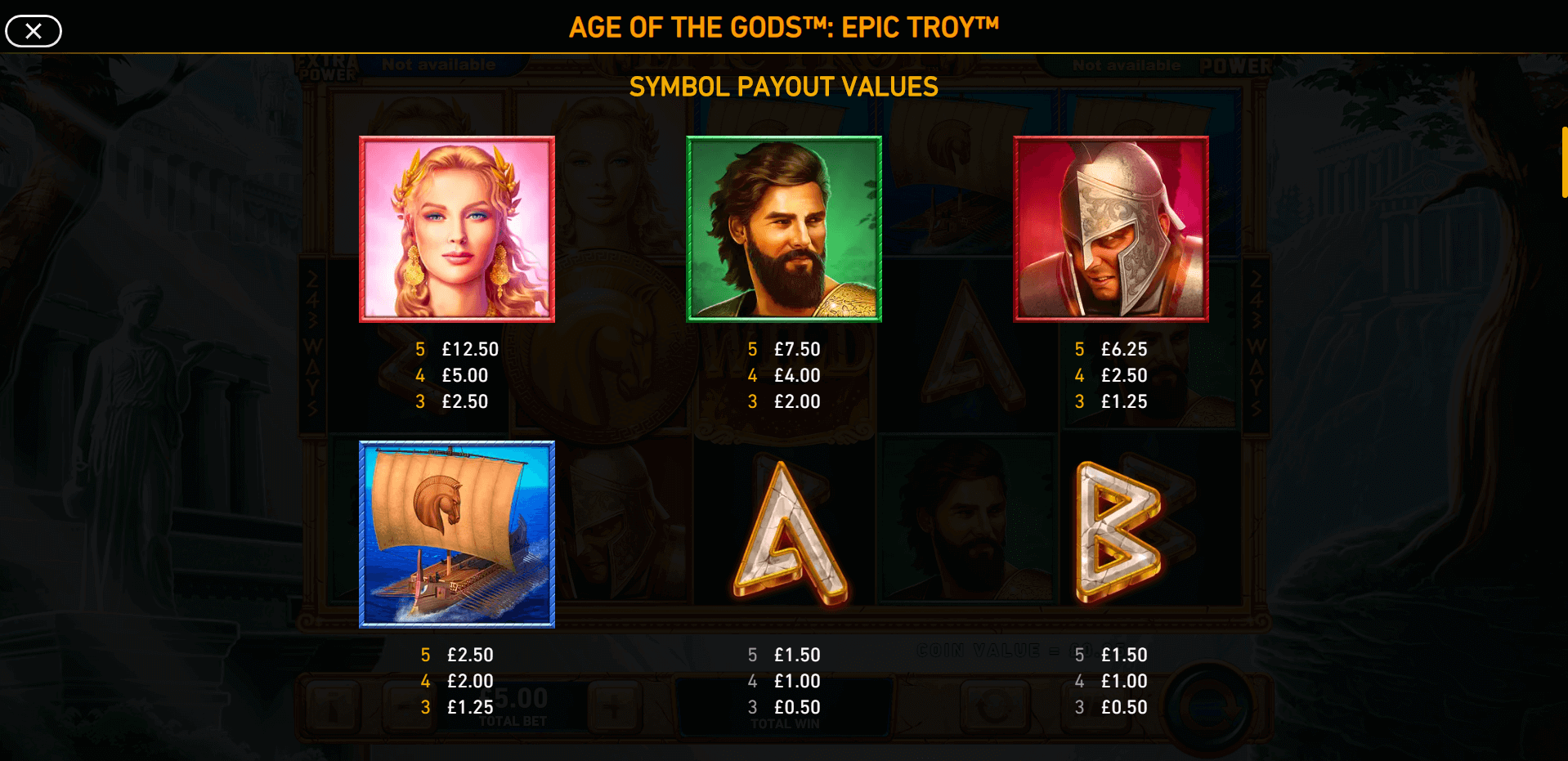 On our site, you can play Age of the Gods: Epic Troy for fun in demo mode. This no registration version lets you explore the gameplay mechanics and bonus features completely free — a perfect way to get familiar with the slot before playing for real money.