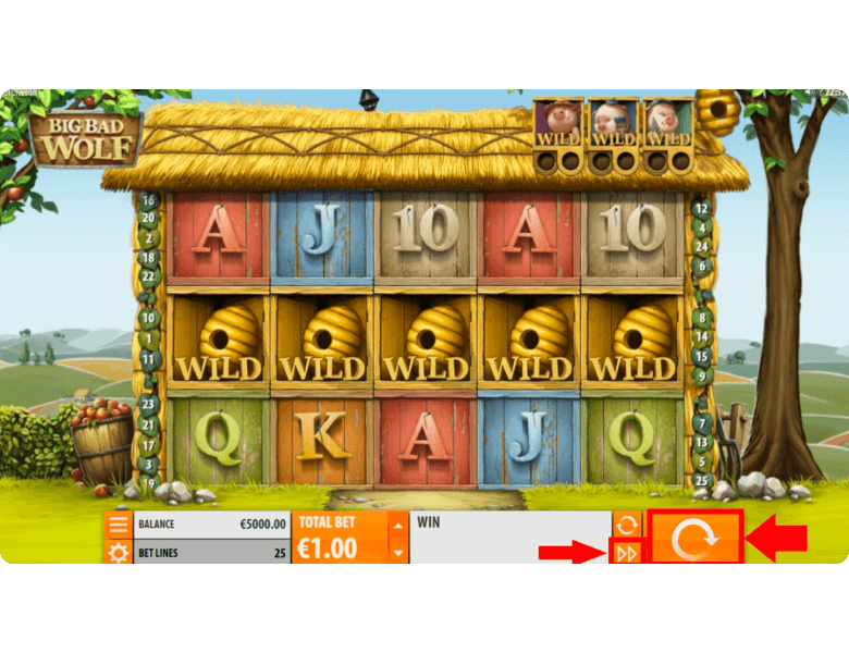 At the core of Big Bad Wolf is the Swooping Reels mechanic—a variation of cascading reels with one key twist. Any winning combination triggers a chain reaction of re-spins. The symbols involved in the win are blown away by the wind, and new ones drop into their place. Each subsequent win is added to the previous payout. The cascade continues as long as new winning combinations keep appearing on the screen.
