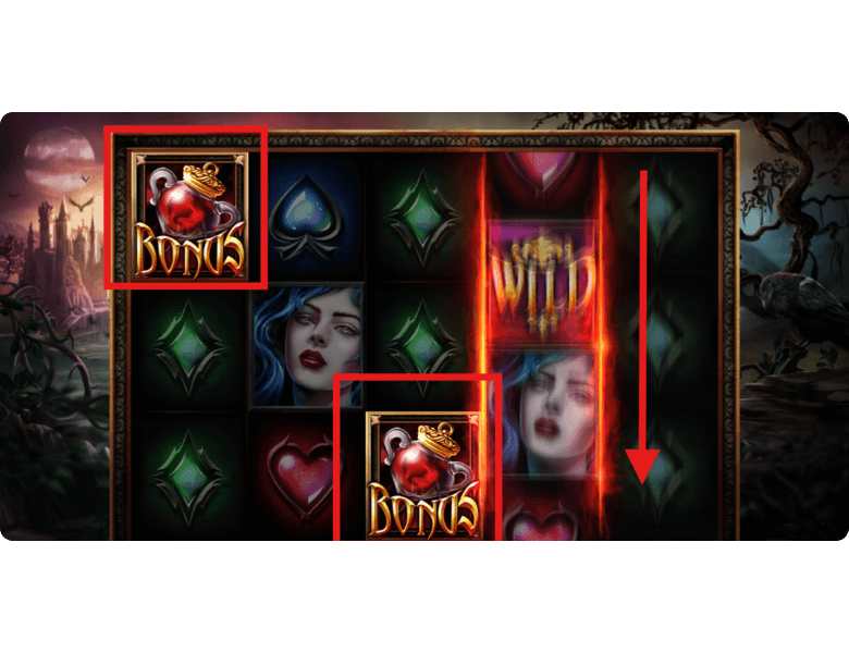 Wild. Of course, ELK Studios did not forget to add another popular bonus — the Wild symbol. It can appear on any reel, complementing existing combinations or creating new ones. The Wild itself has no value, but it can substitute for any vampire or card suit symbol.