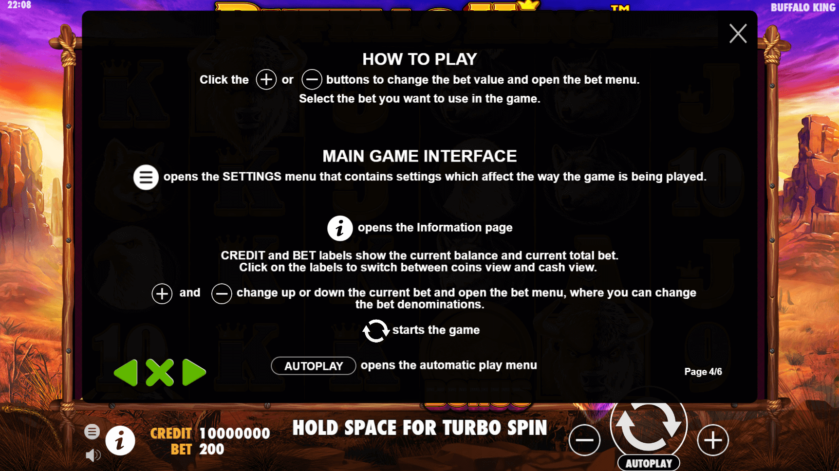 As soon as the slot game loads, the expansive world of the North American steppe opens up in front of you. The idea of expansiveness is reflected in the gentle ambient music, the 6x4 grid and the bright, colorful backdrop image.